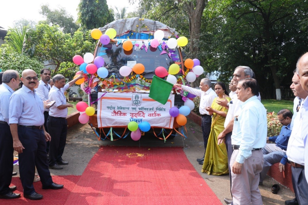 Rashtriya Chemicals and Fertilizers Limited (RCF) launches a newly developed eco-friendly product “ORGANIC GROWTH STIMULANT”. The first dispatch of this new product was flagged off by Hon’ble CMD Shri. S. C. Mudgerikar on 21st Nov 2019. On this occasion, Director (Technical) Shri Sudhir Panadare, Director (Finance) Shri. Umesh Dongre, Director (Marketing) Shri. K.U. Thankachen, and Independent Director Shri Suryanarayana Simhadri were also present.