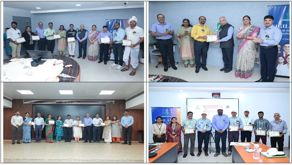 Concluding function of the 3-months Campaign and Observance of VAW-2025 was held on 17.11.2025 in RCF. The first prize winners of various competitions namely, Slogan writing, Poster making, Elocution and Skit/Street play on the VAW-2025 theme organised for awareness-building were felicitated by CMD in the presence of senior management. Second, Third and Consolation prize winners were felicitated by ED(Trombay) and ED(Thal) during morning meeting at respective units on 18.11.2025.